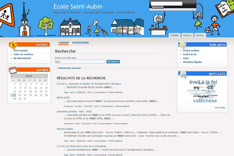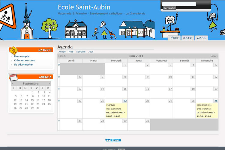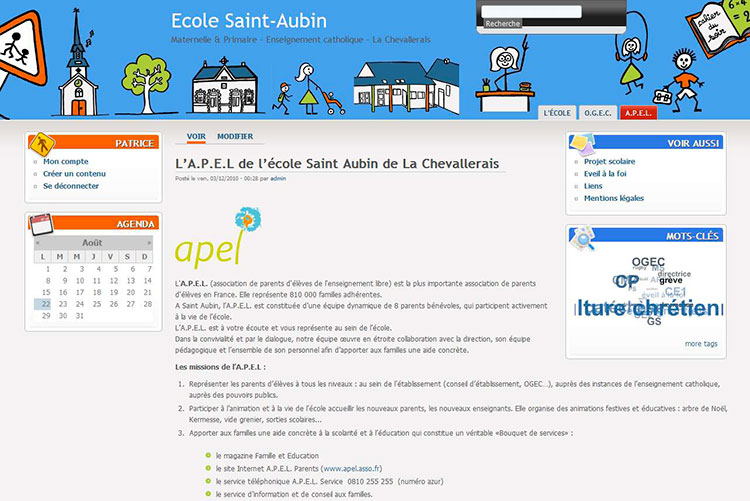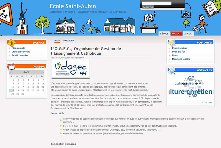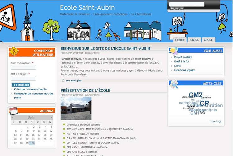 De 2010 à 2015, la directrice, l'APEL et l'OGEC de l'école Saint-Aubin à La Chevallerais ont pu communiquer sur l'école via un site Drupal 6...
